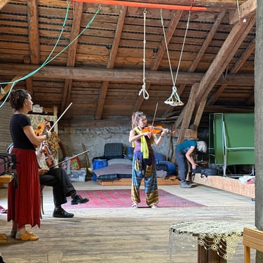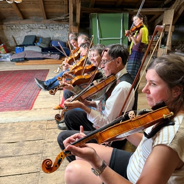 L'objectif de ce projet, débuté en 2024 et initié par les membres du duo Balancez vos Ames ! est de proposer une expérience collective de la musique dans un ensemble à géométrie variable mais également de faire revivre un répertoire de musique presque inconnu.