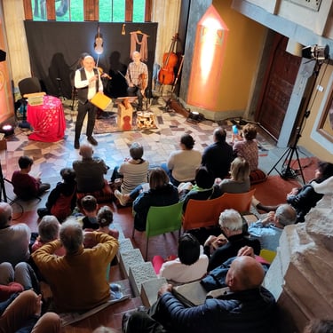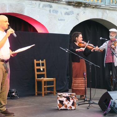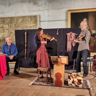 Dans les années 1970 et 1980, Jean-Marc Jacquier (1949-2021), fondateur du groupe La Kinkerne et spécialiste des musiques alpines, a enregistré les derniers violoneux de village des vallées savoyardes, rêvant de faire connaître un jour ce répertoire particulier et inédit. L’association Terres d’Empreintes, poursuivant ses travaux de recherche après sa mort, propose un aboutissement de ce projet avec le livre-CD « Violoneux savoyards » (sorti en 2022). C’est à l’occasion de la parution de cet ouvrage que le spectacle Les notes au bout des doigts a vu le jour : il propose un moment convivial et vivant, entremêlant saynètes, témoignages et musiques.